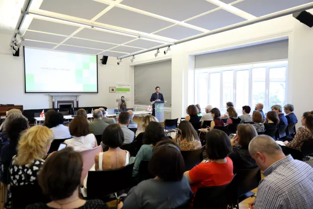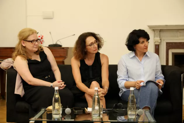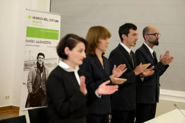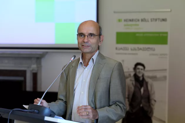 Our 20th-anniversary celebration took place at the Goethe Institute in Tbilisi. The event commenced with welcome remarks from Jan-Philipp Albrecht, Co-President, and Walter Kaufmann, Head of the East & Southeast Europe Division at the Heinrich Boell Foundation.